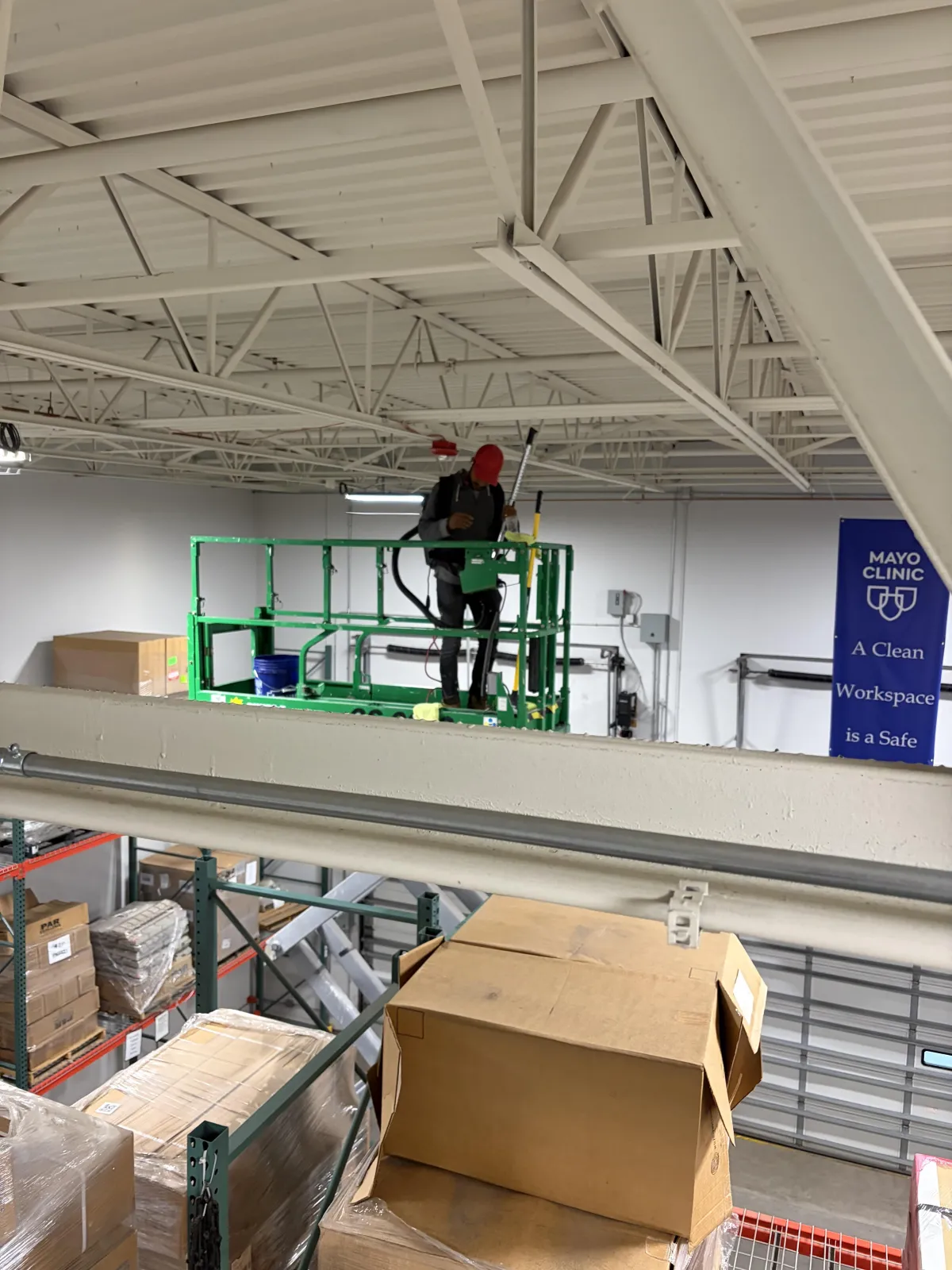We use a combination of methods depending on your facility: HEPA vacuum high-reach systems (ground-based) Telescoping pole systems Lift-assisted cleaning for higher or complex areas